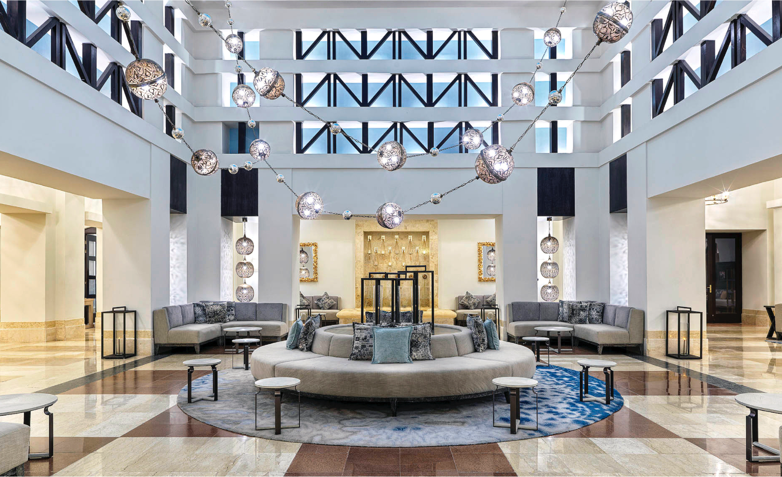 The hotel’s bold tone palette, where its brick colored facade along with beige and blue accents reflect the amity between the sea, deserts and mountains, transporting you to the vibrant color combinations of the Nubian villages that lie amidst tropical greenery and blue waters.